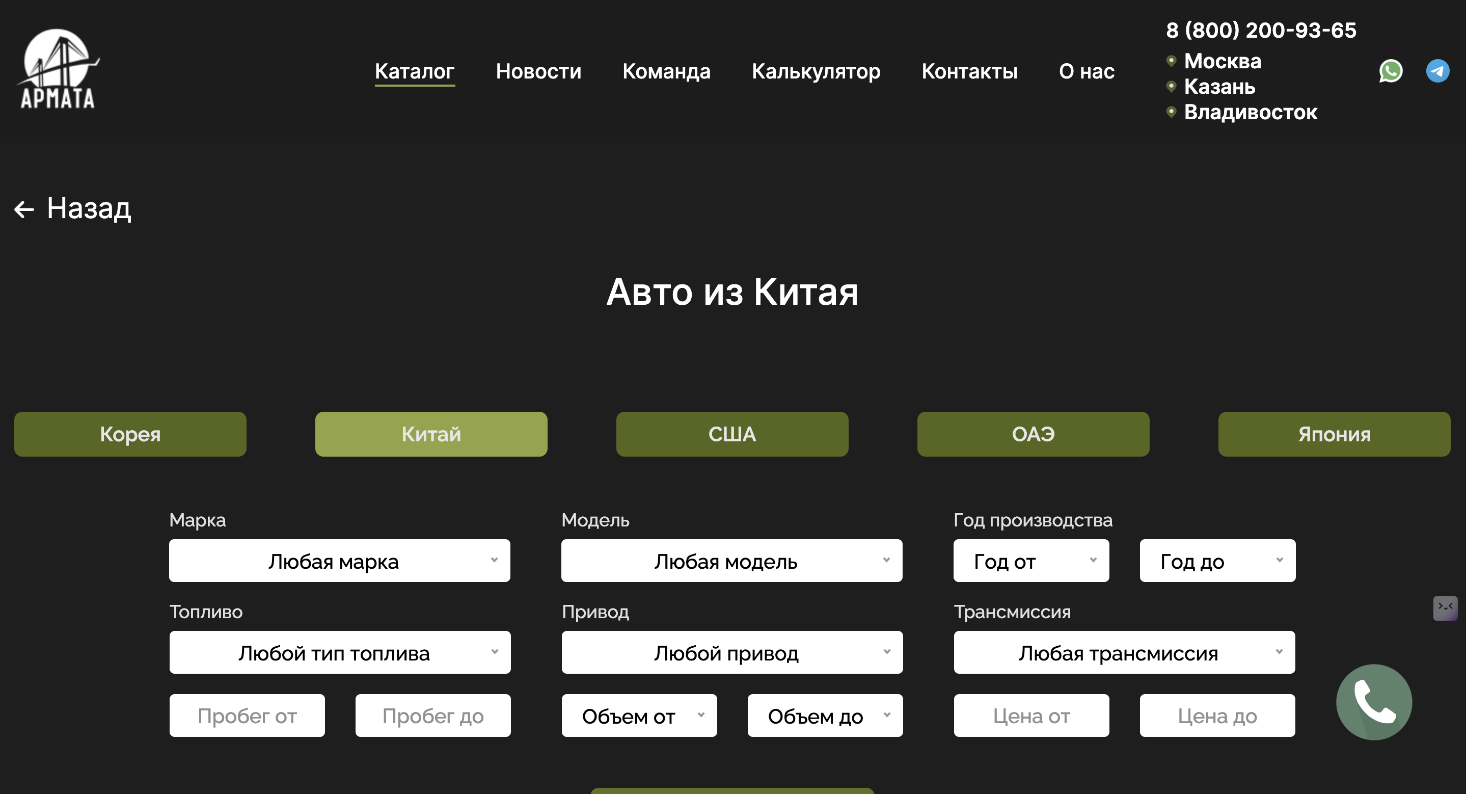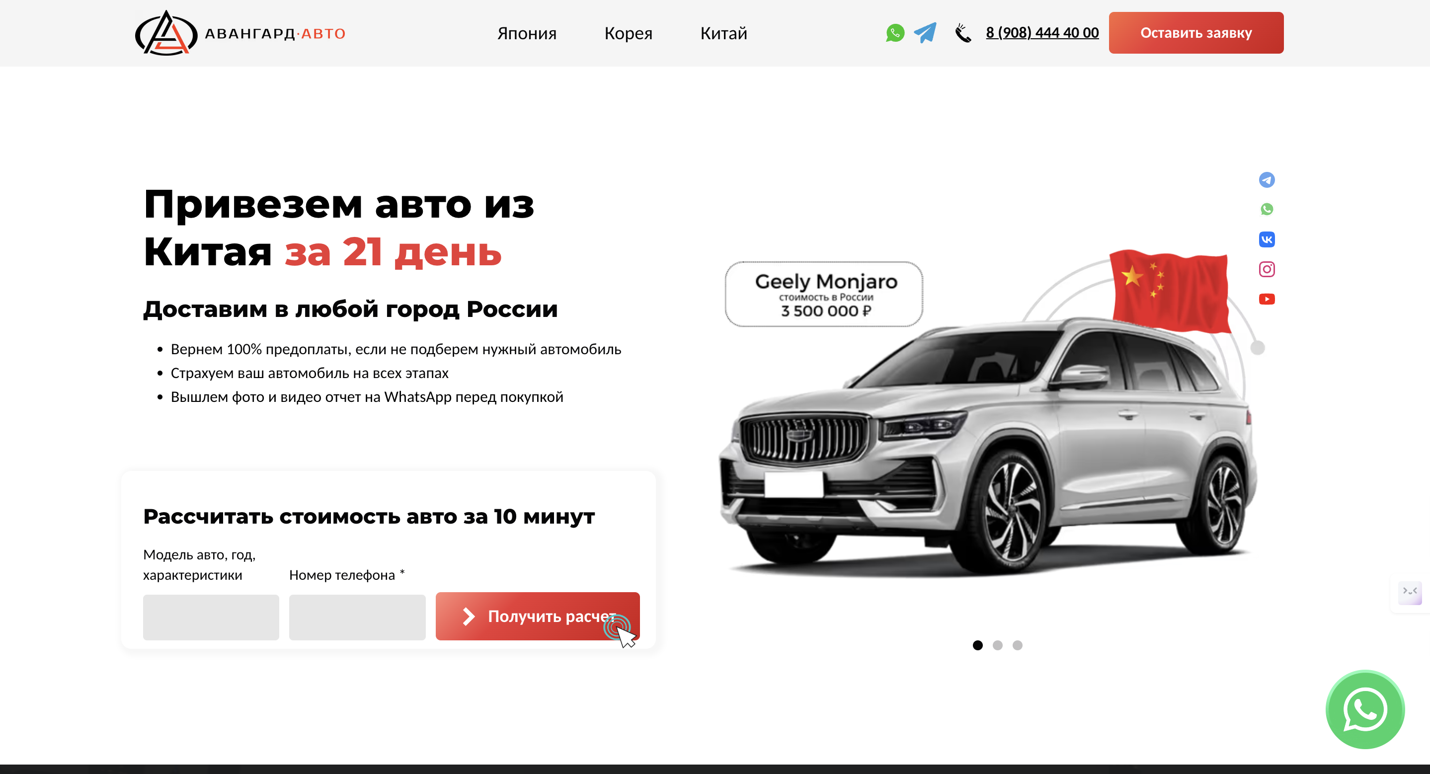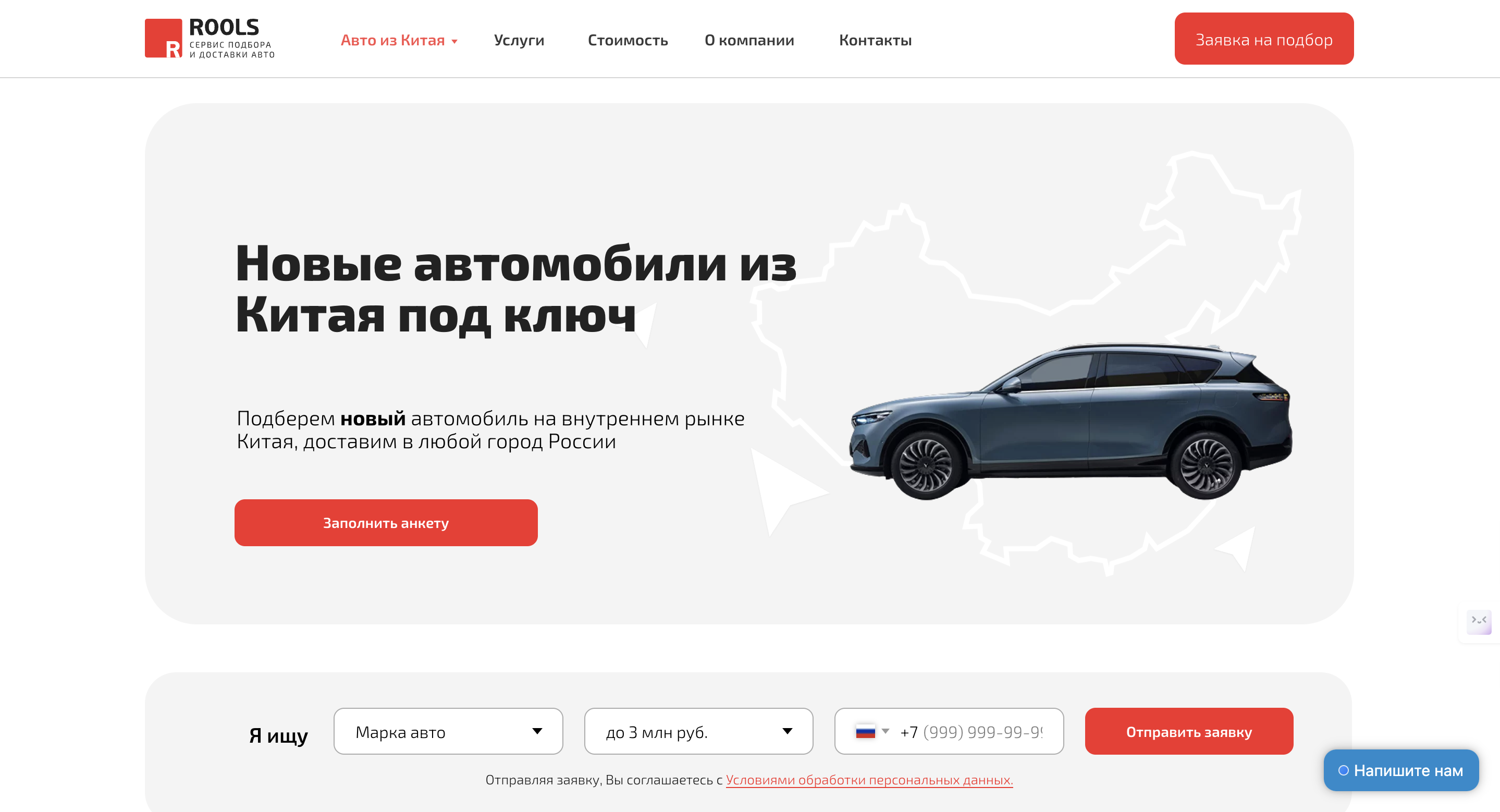 Компания существует на рынке порядка трёх лет и предлагает «под ключ» услуги по доставке автомобилей из Китая. Берут на себя все этапы — от поиска лота до передачи авто клиенту, включая таможню и логистику.