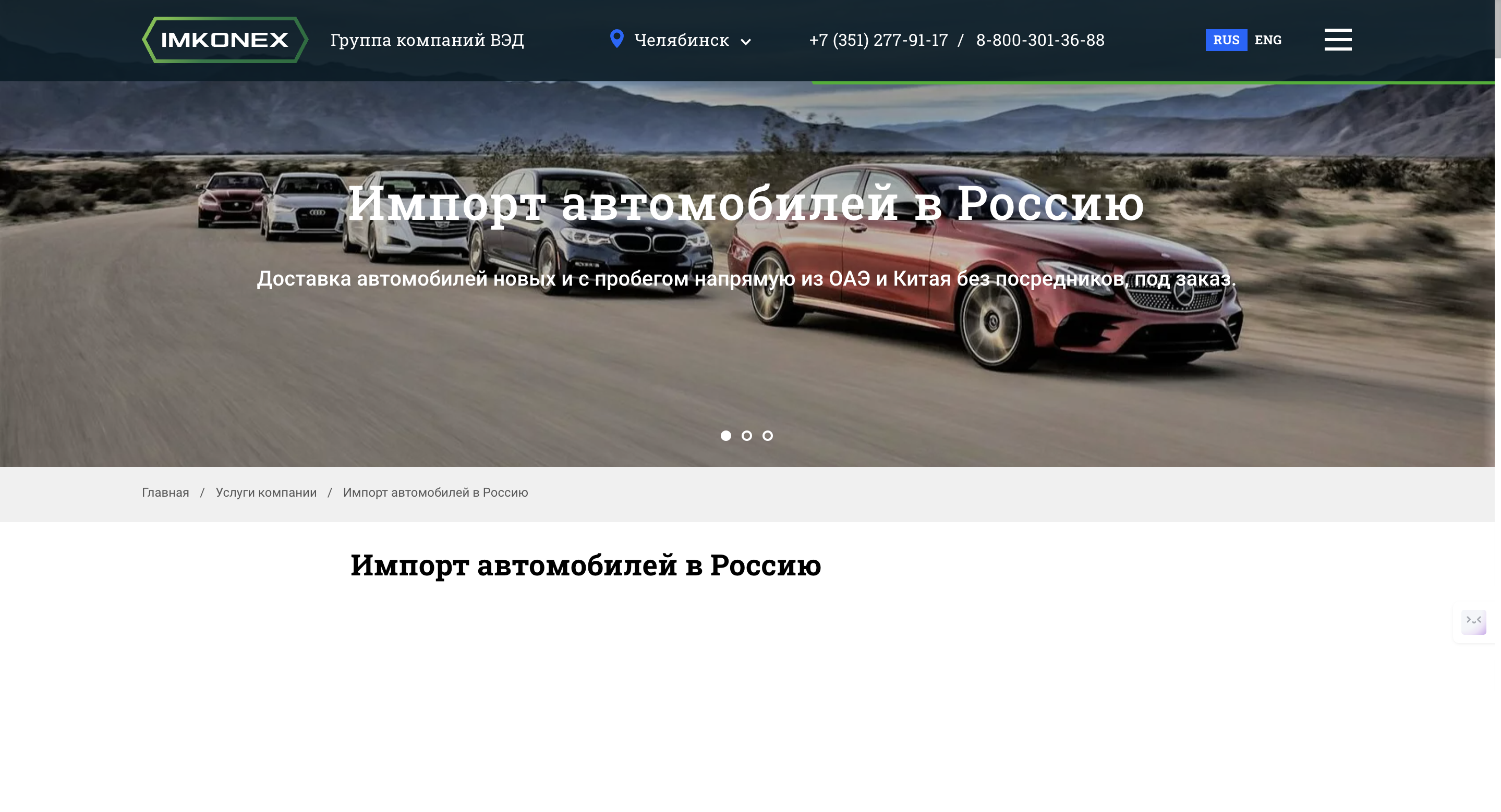 IMKONEX занимается импортом автомобилей из Китая и ОАЭ в Россию, обеспечивая как юридическую, так и физическую часть процесса. Предоставляет пакет услуг от консультаций до логистики и таможенного сопровождения.