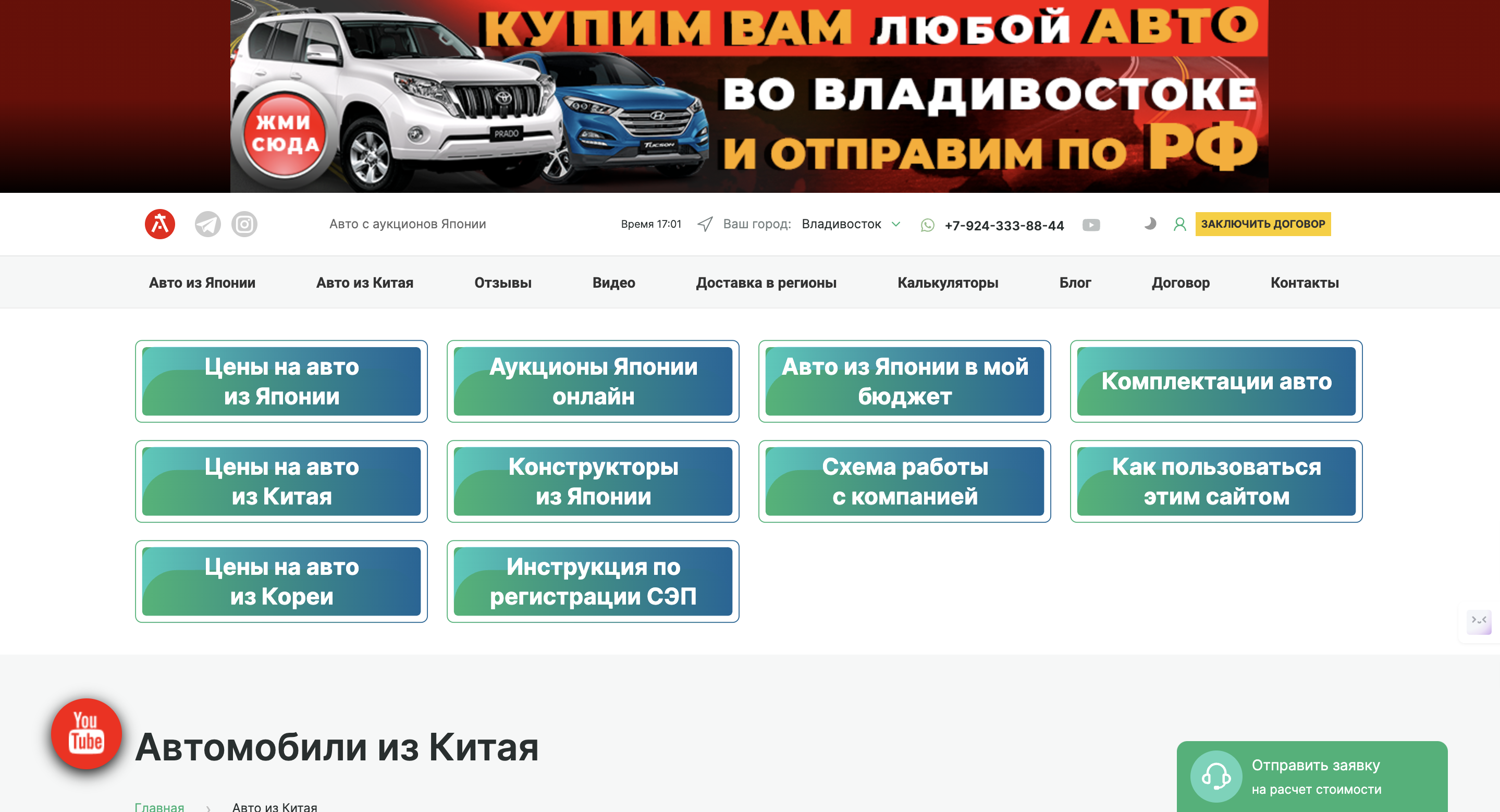 Данная компания помогает купить новые модели с левым рулём, а также автомобили с аукционов или дилеров в Китае, чтобы затем доставить их в Россию в наилучших условиях.